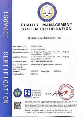 浙江歐騰服飾有限公司位于世界小商品之都-義烏。創(chuàng)立于2015年,是一家專業(yè)生產(chǎn)無(wú)縫針織運(yùn)動(dòng)服飾和內(nèi)衣的工貿(mào)一體企業(yè),擁有自主出口權(quán)。 工廠的占地面積約16000平方米 ,引進(jìn)了大型圣東尼、高騰等多種先進(jìn)的制衣設(shè)備300余臺(tái)。月產(chǎn)能可達(dá)90萬(wàn)件。 歐騰服飾每年投入近百萬(wàn)資金打樣開發(fā)新產(chǎn)品,有著一支高素質(zhì)設(shè)計(jì)、技術(shù)員工隊(duì)伍。工廠先后通過了ISO 9001質(zhì)量管理體系認(rèn)證、BSCI認(rèn)證、GRS認(rèn)證、OEKO-TEX國(guó)際生態(tài)紡織品認(rèn)證等多項(xiàng)專利檢測(cè)報(bào)告。可提供OEM&ODM服務(wù)。歐騰服飾以一套完整、科學(xué)的質(zhì)量管理體系,生產(chǎn)的服裝從原材料紗線到成衣,質(zhì)量完全能夠滿足國(guó)內(nèi)、國(guó)際質(zhì)量要求。獲得了客戶一致好評(píng)。工廠先后獲得省科技型企業(yè)、國(guó)家高新企業(yè)、義烏市誠(chéng)信講信用單位、規(guī)上企業(yè)、信用AAA級(jí)等榮譽(yù)。